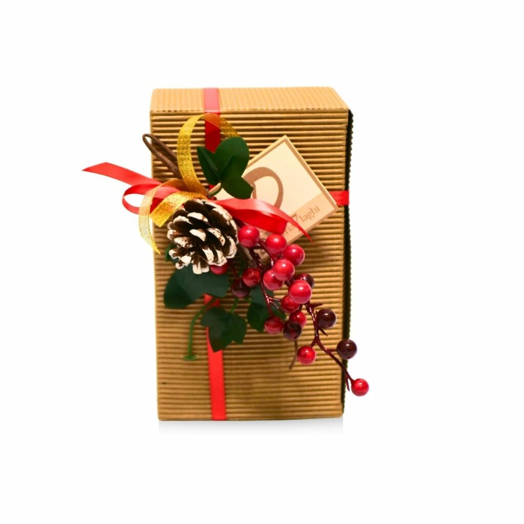 Una borsetta in juta dal design naturale, perfetta come piccolo pensiero natalizio. All’interno, Brutti & Buoni Dolceria 7 Laghi da 100 g: un regalo semplice, curato e sempre apprezzato.